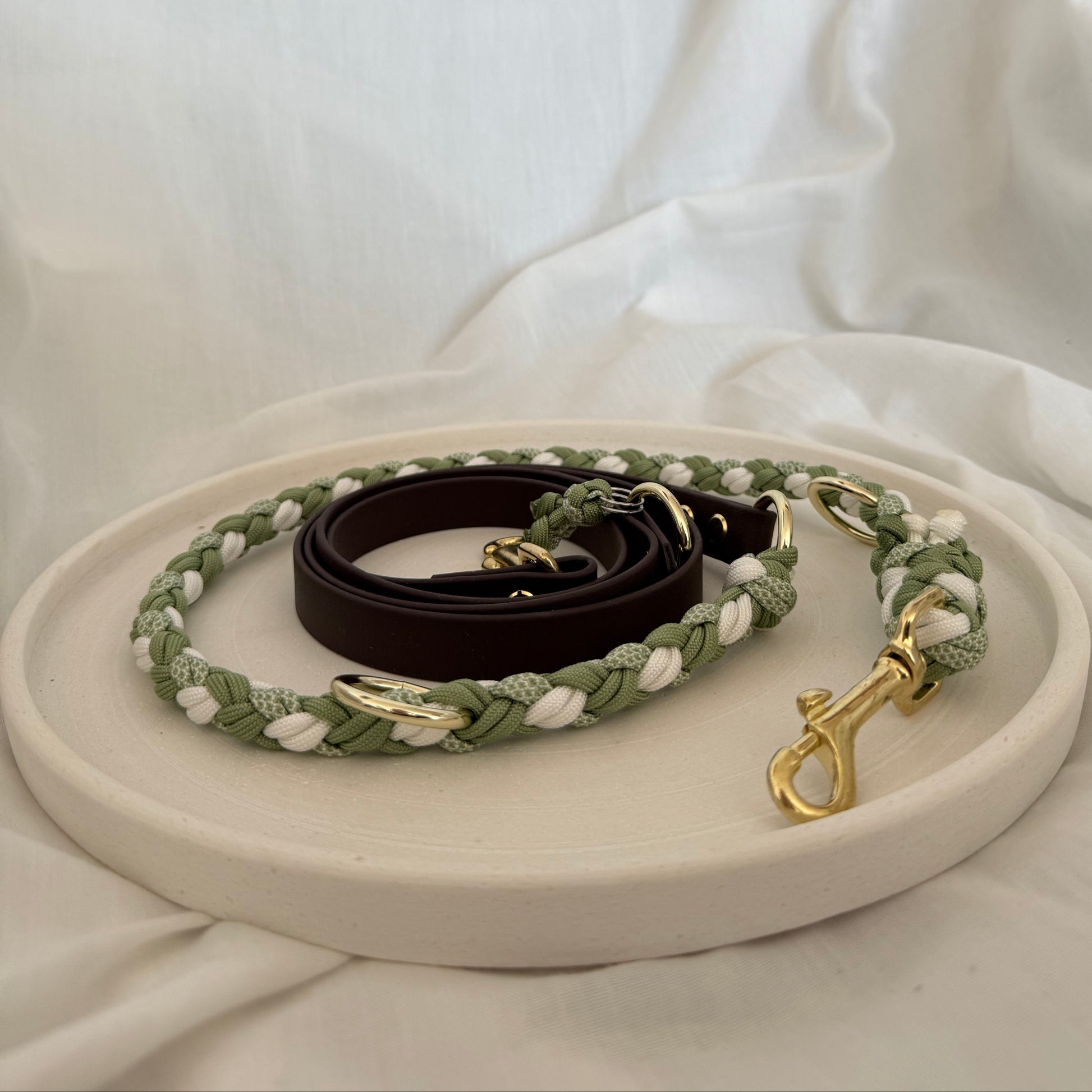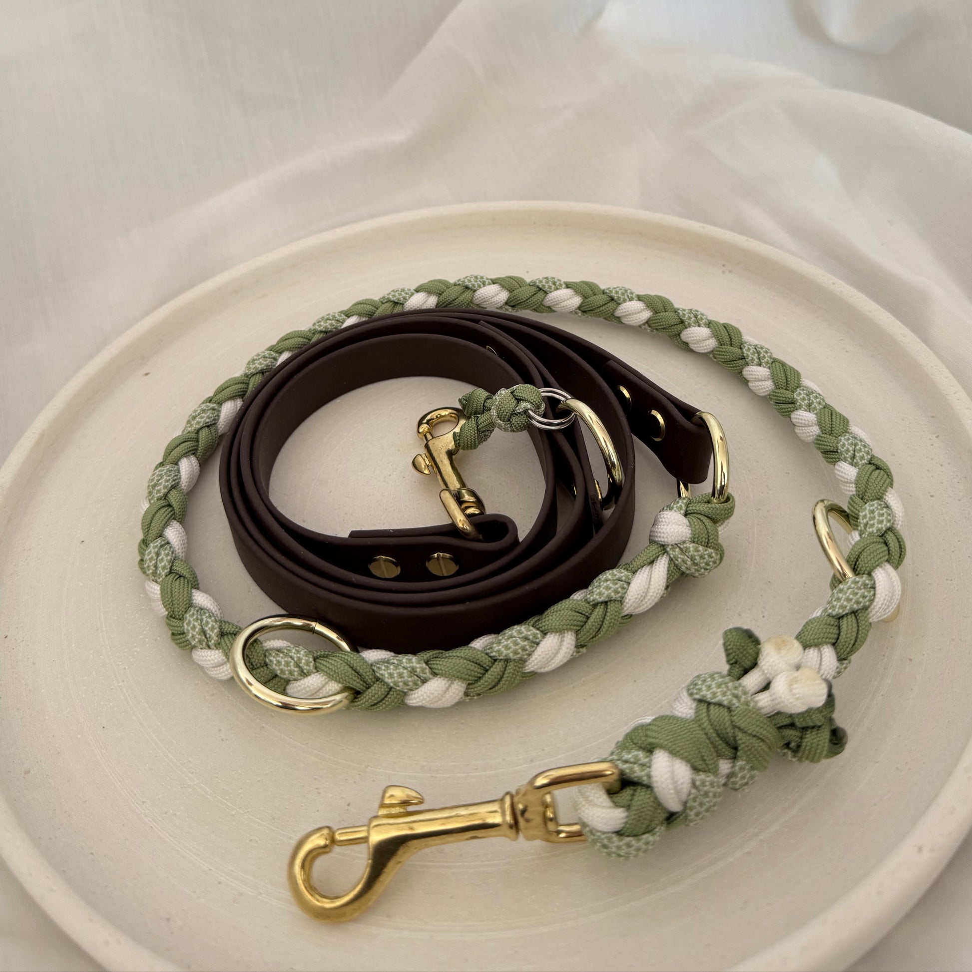 Unsere hochwertige „HandsOff“ Leine vereint modernes Design mit maximaler Flexibilität. Das geflochtene Paracord sorgt für Stabilität und ein angenehmes Tragegefühl, während der wasserfeste Biothane-Abschnitt für Langlebigkeit und einfache Pflege steht. Die elegante Farbkombination aus Grün und Weiß macht die Leine zum stilvollen Accessoire für deinen Vierbeiner.
