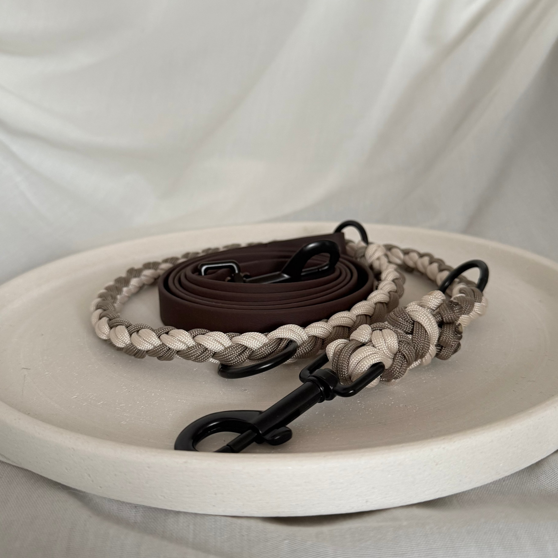 Unsere elegante HandsOff-Leine in Beige vereint minimalistischen Stil mit höchstem Komfort und Funktionalität. Mit einer Gesamtlänge von 2,20m oder 2,60m bietet sie maximale Flexibilität für entspannte Spaziergänge , ob umgehängt, halbiert oder klassisch mit Handschlaufe getragen.